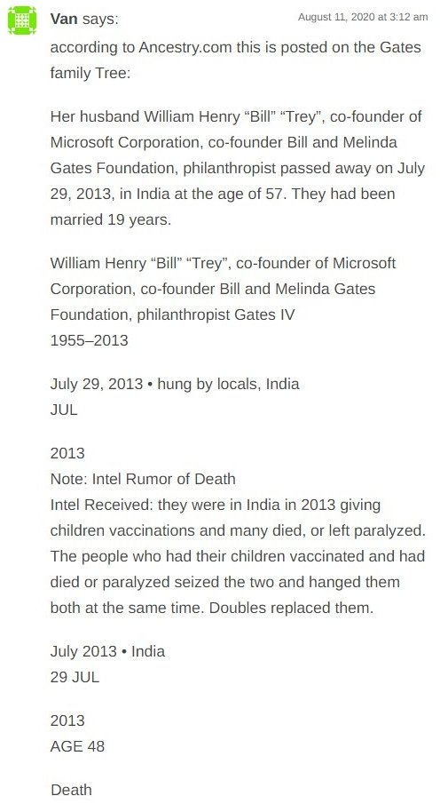 ⛓ @BillGates Arrested. ☠️ Executed. Code § 2381, 2382, 2384 & 2385. Crimes Against Humanity. Hung By Indian Locals As Per @Ancestry.com 🔁 Replaced. Military Installed Crisis Actor Doubles. 💊 https://humorousmathematics.com/post/mid-2020-gitmo-update-arrests-indictments-executions 💊 https://humorousmathematics.com/post/the-executed-clones-doubles-vril-lizard-reptilian-parasites
