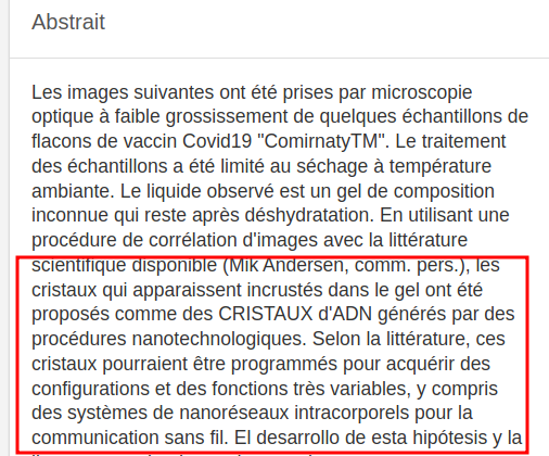 @Stuckelberger đđ„ 20/ THREAD NANOTECHS /GRAPHENE SYNTHESE FACTUELLE ! PARCE QUE... NANOTECHS en lien avec ADN ? : đ„ĂTUDE DE FĂVIER 2022 : "LA NANOTECHNOLOGIE DES CRISTAUX D'ADN DANS LES VACCINS COVID19 ?" Trad đ«đ· du rĂ©sumĂ© en imageâŹïž đ„Lien Ă©tude : https://www.researchgate.net/publication/358284707_DNA_CRYSTALS_NANOTECHNOLOGY_IN_COVID19_VACCINES