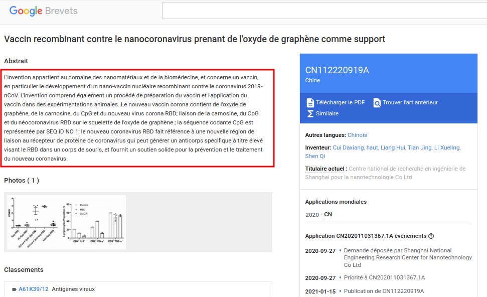 đđ„ 7/ THREAD NANOTECHS /GRAPHENE SYNTHESE FACTUELLE ! Une demande de brevet de 2020 pour : "Vaccin recombinant contre le nanocoronavirus prenant de l'oxyde de graphĂšne comme support" Lien : https://patents.google.com/patent/CN112220919A/en