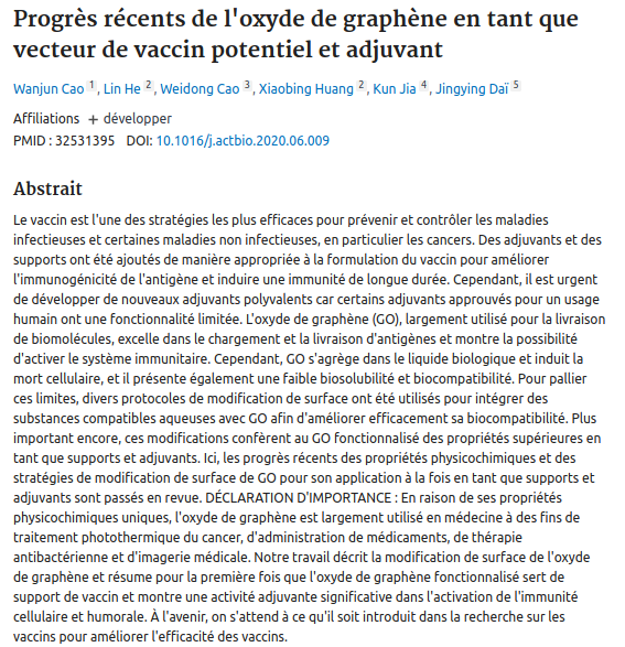 đđ„ 8/ THREAD NANOTECHS /GRAPHENE SYNTHESE FACTUELLE ! "OXYDE GRAPHĂNE COMME ADJUVANT DE VACCIN" !!! ĂTUDE DE JUIN 2020 "ProgrĂšs rĂ©cents de l'oxyde de graphĂšne en tant que vecteur de vaccin potentiel et adjuvant" Tradđ«đ· du rĂ©sumĂ© dans imageâŹïž Lien Ă©tude : https://pubmed.ncbi.nlm.nih.gov/32531395/
