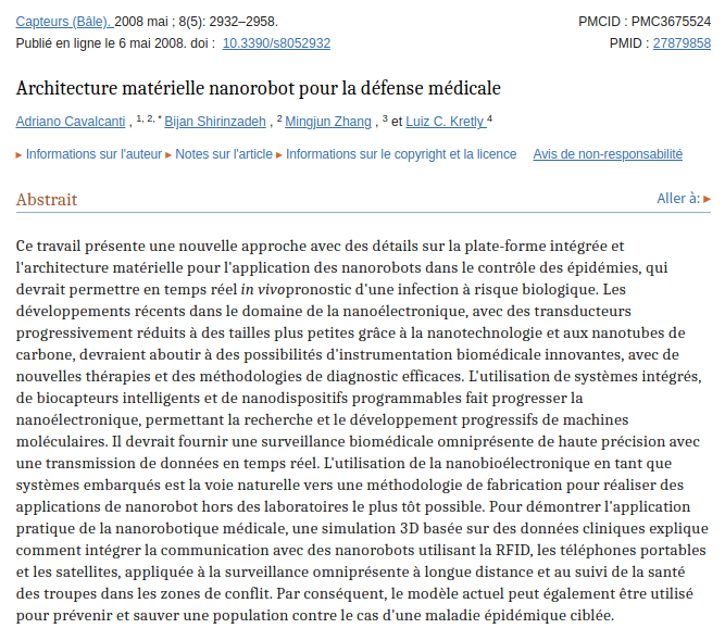 đđ„ 9/ THREAD NANOTECHS /GRAPHENE SYNTHESE FACTUELLE ! "NANOROBOT pour la dĂ©fense mĂ©dicale" : Ătude en 2008 ! Trad đ«đ·du rĂ©sumĂ© de l'Ă©tude en imageâŹïž Lien vers l'Ă©tude : https://ncbi.nlm.nih.gov/pmc/articles/PMC3675524/