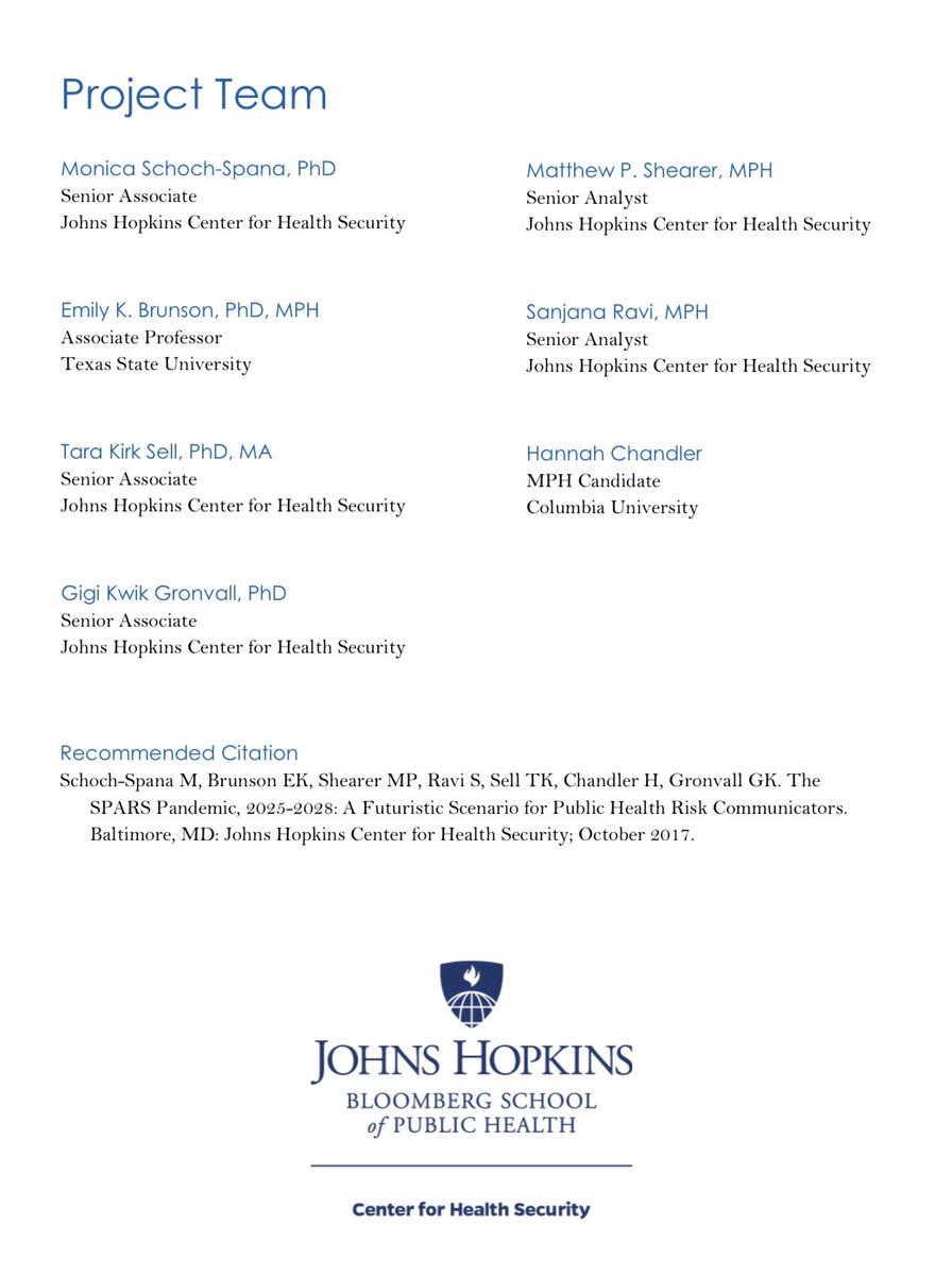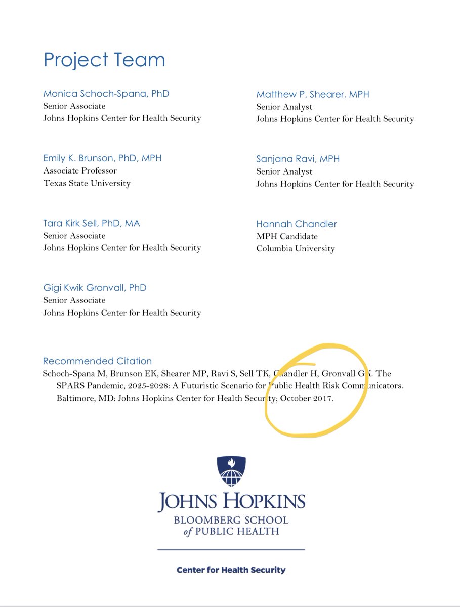 (7/19) 2017: 3 years before Covid, SPARS Pandemic scenario is created by Johns Hopkins & the Gates Foundation to prepare for a future pandemic. These are the same people who hosted a coronavirus pandemic simulation (Event 201) just a couple months before Covid.
