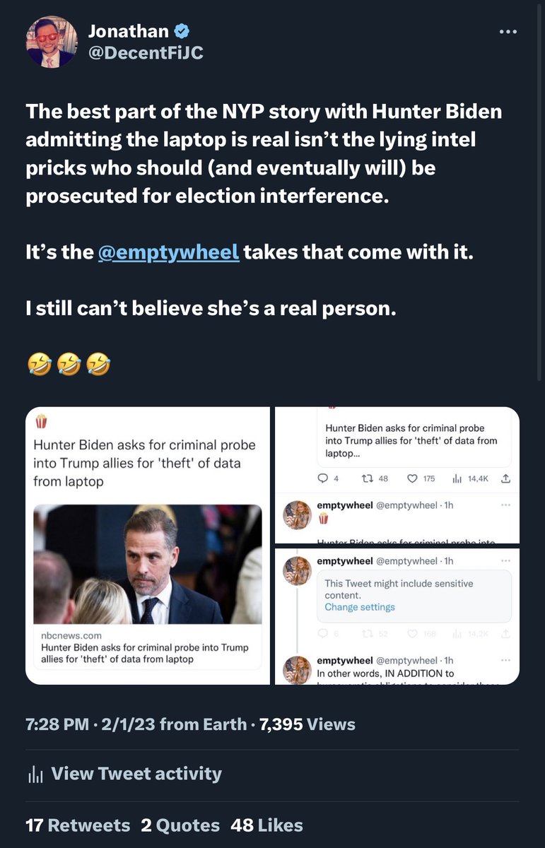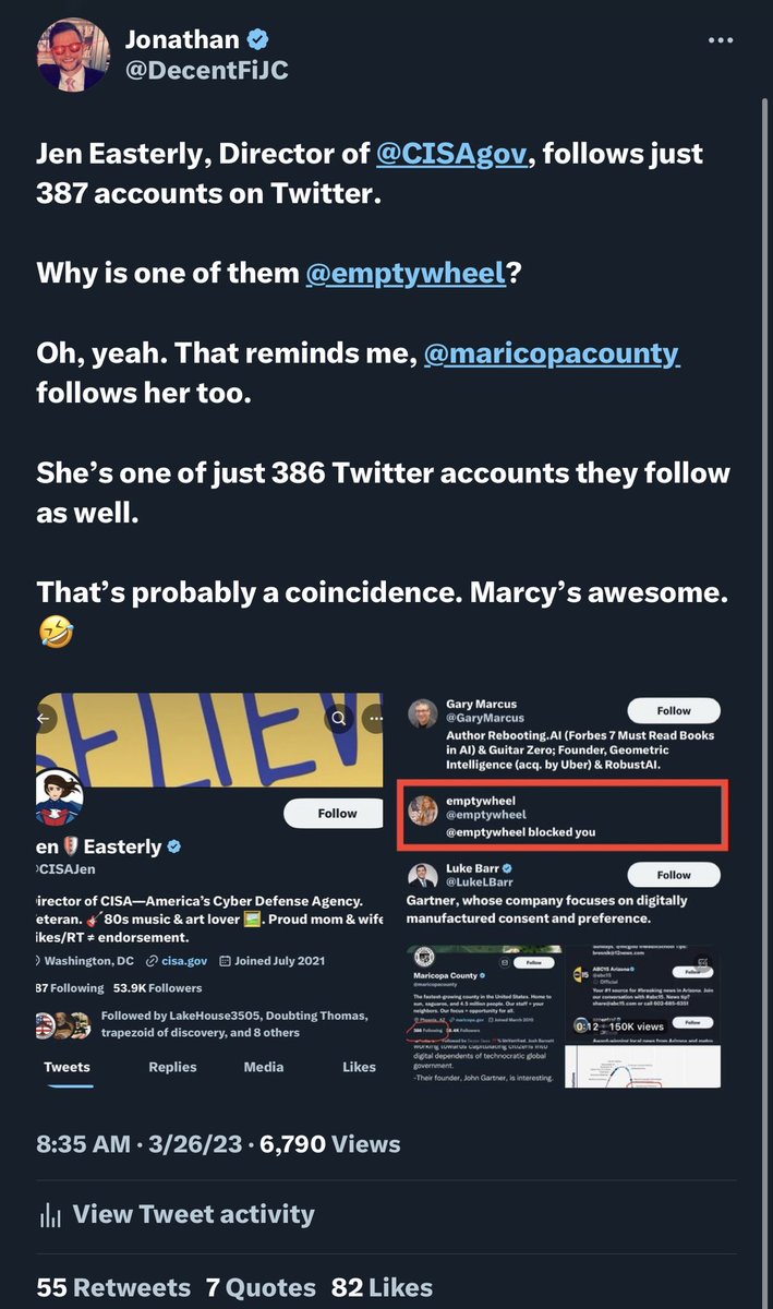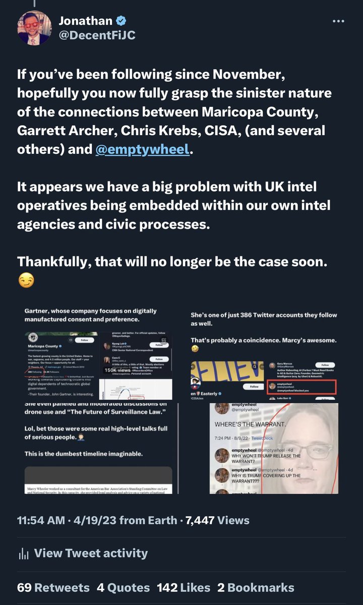 You’ll see the Maricopa, Archer and CISA links to @emptywheel below. 💥Oh, yeah — you’ll also see some delusional Hunter Biden laptop simping from her too, which explains why Hunter’s business partners randomly showed up recently in a thread regarding Kari Lake’s election…