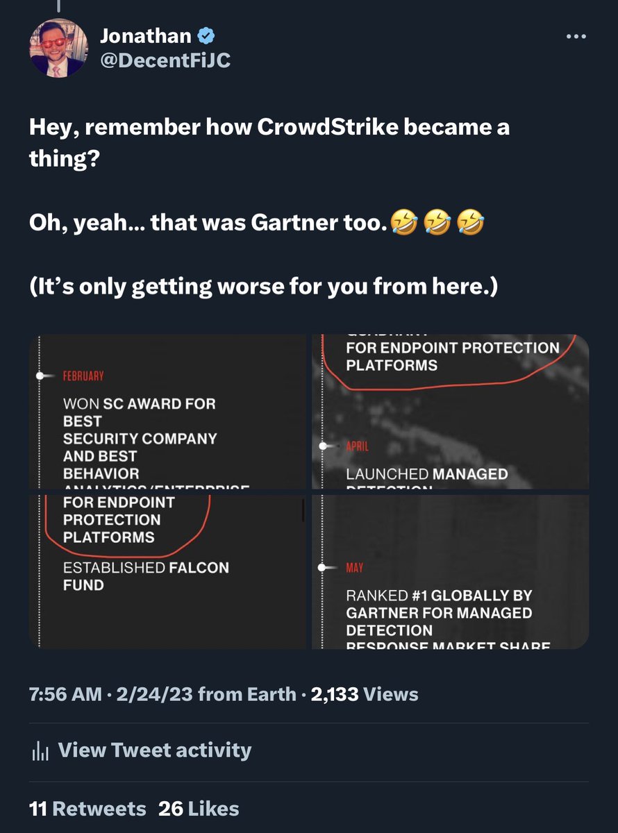 💥You should also remember, Gartner, Inc. was INSTRUMENTAL in pushing f’ing CROWDSTRIKE to the forefront when they were getting started!!! 🤬🤬🤬🤬🤬🤬🤬🤬 They also like having John Brennan as a keynote speaker at their events and are open about their engagement in a digital…