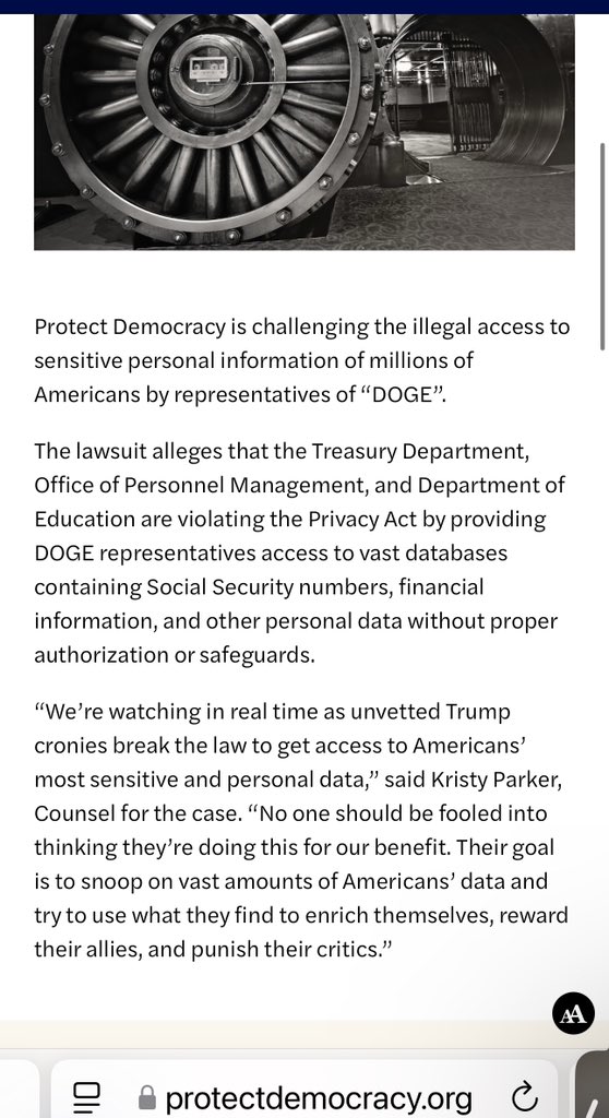 Now those resources are being used to attack President Trump. Protect Democracy has already sued Treasury, DOE, and OPM for sharing records with @DOGE. They also sued the Trump administration over his efforts to root out subversive bureaucrats. https://t.co/tX9FQl6KSA