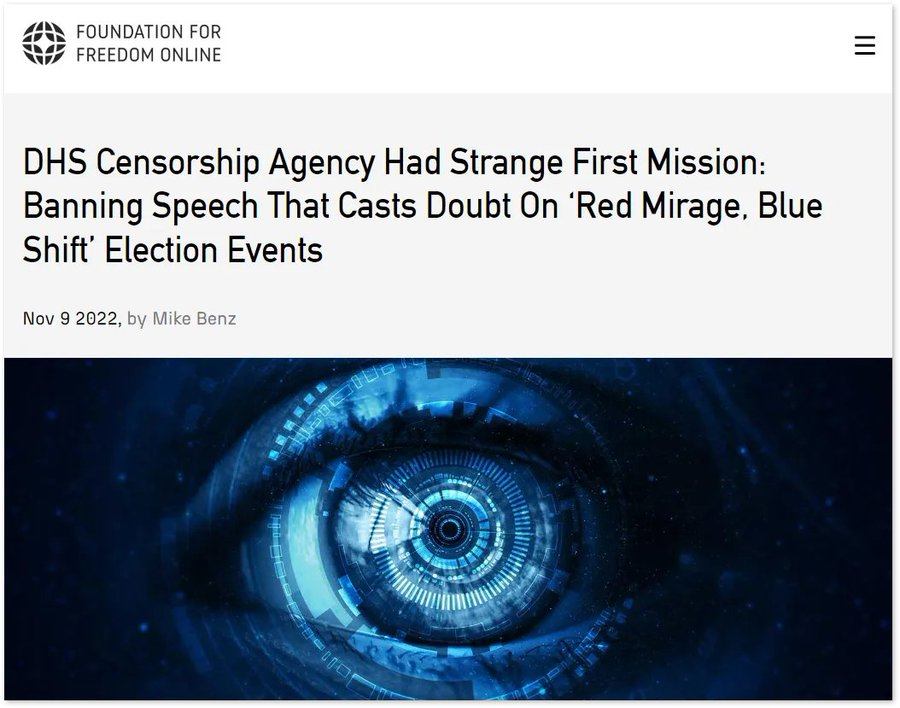 Please consider following and supporting @MikeBenzCyber. Here's the full interview with @TuckerCarlson and the @FFO_Freedom report: DHS Censorship Agency Had Strange First Mission: Banning Speech That Casts Doubt On ‘Red Mirage, Blue Shift’ Election Events https://foundationforfreedomonline.com/dhs-censorship-agency-had-strange-first-mission-banning-speech-that-casts-doubt-on-red-mirage-blue-shift-election-events/