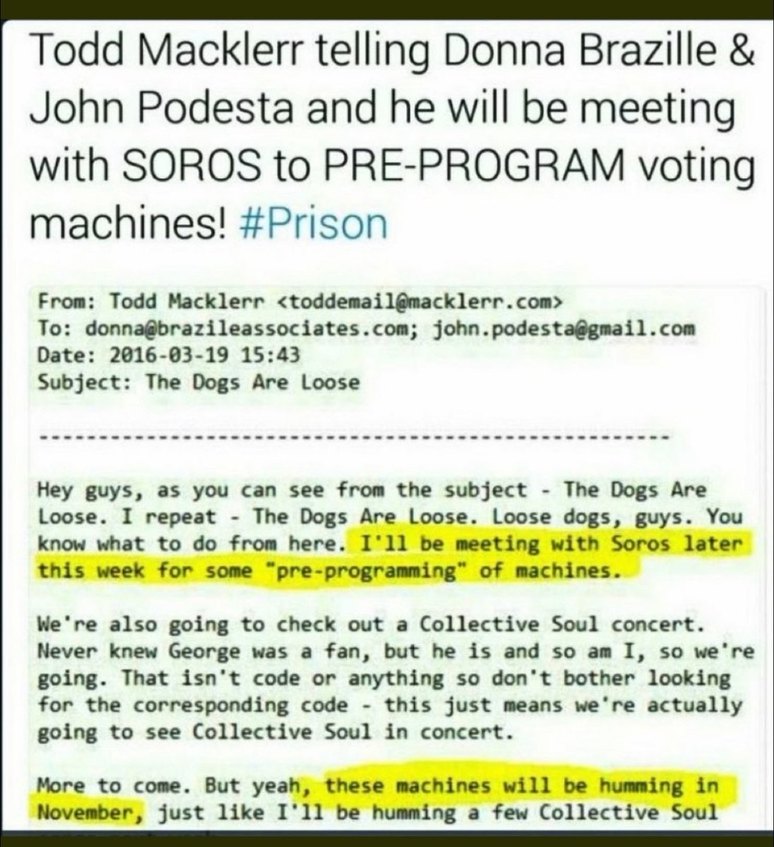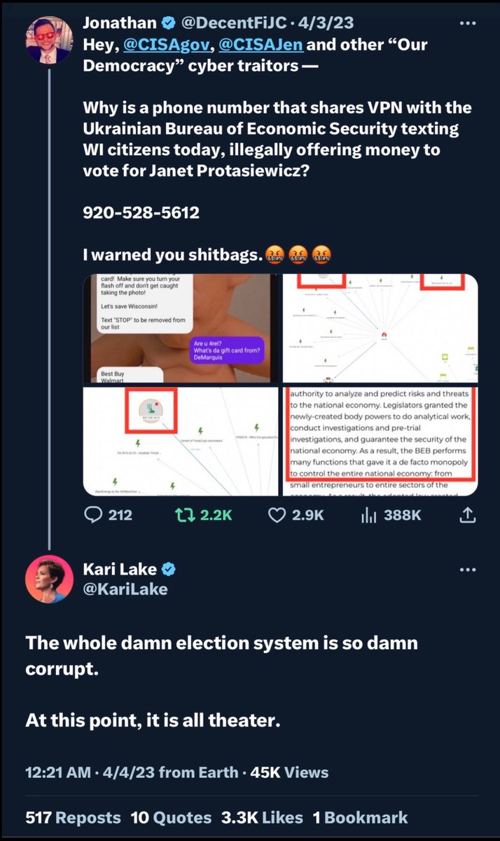 America is in the middle of a full blown coup d'é·tatz Nov 2020– Former Members of the US Intel, DoD, NASA, US National Labatories, Cyber Security firms, and legal firms around the country all came together to investigate election anomalies. https://rumble.com/v45f3sb-mike-lindell-cyber-symposium-col.-phil-waldron-your-wake-up-call.html THE ENTIRE US ELECTION SYSTEM is under the total control of private equity firms and foreign money… 🟣 UBS Securities LLC New York & UBS Securities Co. limited, Beijing, injected hundreds of Millions of dollars into Staple Street Capital, the owner of Dominion Voting • UBS holds the intellectual property of Dominion as their equity collateral • Up until Dec 2020, UBS Securities LLC New York listed three senior Communist Chinese Party members as being on the boards of both UBS Securities LLC New York & UBS Securities Co. limited, Beijing. — The companies are owned 75% by the Chinese Government 🟣 Scytl- the parent company of Clarity Elections located in Spain.. went bankrupt in May of 2020, and was subsequently purchased in a closed private equity deal by an Irish Company called, Paragon. • The Election Sites for numerous counties in the US go to a Clarity Elections web address. — The President, Secretary, Treasurer, and CEO are all occupied by one man, Jonathan Brill. • Johnathan happens to be part of Scytl Senior Management team, and has run campaigns for Democrat party candidates. 🟣 The Election Systems and their equipment can be connected, hacked, and manipulated. • The 2018 Kentucky Gov race, showed an exact vote flip of 560 votes that went from (R) Matt Bevin to (D) Andy Beshear. • An Election Supervisor could scan ballots multiple times, and through the adjudication process, could vote for someone who did not vote. • Initiated by a court order, a Michigan Investigation team gained access to a DS200 tabulator, the machine that counts the votes. — A 4G wireless Chip was discovered embedded into the motherboard. — The Voting Machine tapes showed modem engagement and election data. 🟣 THE 2020 ELECTION: Five Key States ALL Stopped Counting at a Certain Time. • When counting resumed, Joe Biden was the recipient of a massive spike in votes. 🟣 Over 200 non-profits received substantial funding from a single source; George Soros. • George Soros’s Open Society Foundation wrote a white-paper entitled “U.S. Programs 2015-2018 Strategy” which began funding radical operations in Arizona & Georgia in 2015, with the goal of subverting the 2020 election. • Through massive campaign contributions and non-profit funding, George Soros owns and controls… - countless public officials - university professors - teachers unions - mayors - district attorneys - judges - congressmen - senators - secretaries of state - sheriffs - governors - and electronic voting machine companies around the world • In 2010, George Soros declared China had a better functioning government of the United States 🟣 THE CCP has Been Plotting to take over the United States Over Half a Century • Their unconventional warfare principals are barely recognizable to the US Population • The Chinese gov and their operative’s have been buying up the United States at an alarming rate… - American Farms & Businesses - Chinese firms own several major US Entertainment Industries, and own more than 8,000 American Theaters - Many sports teams and players are control by the CCP • Joe Biden, as VP, took billions of dollars in bribes from the Chinese Government in the form of payments to Hunter Bidens Businesses. • China is trying to gain Control of US Port facility Operations and already own the Panamal Canal. • China is building 5G networks throughout Europe and the West to steal sensitive data • 97% of antibiotics come from China • 80% of US Imports of rare earth minerals come from China • 97% of Fentanyl is smuggled into the US from China China’s stated goal is to own America by 2035… This is our wake up call! ☎️