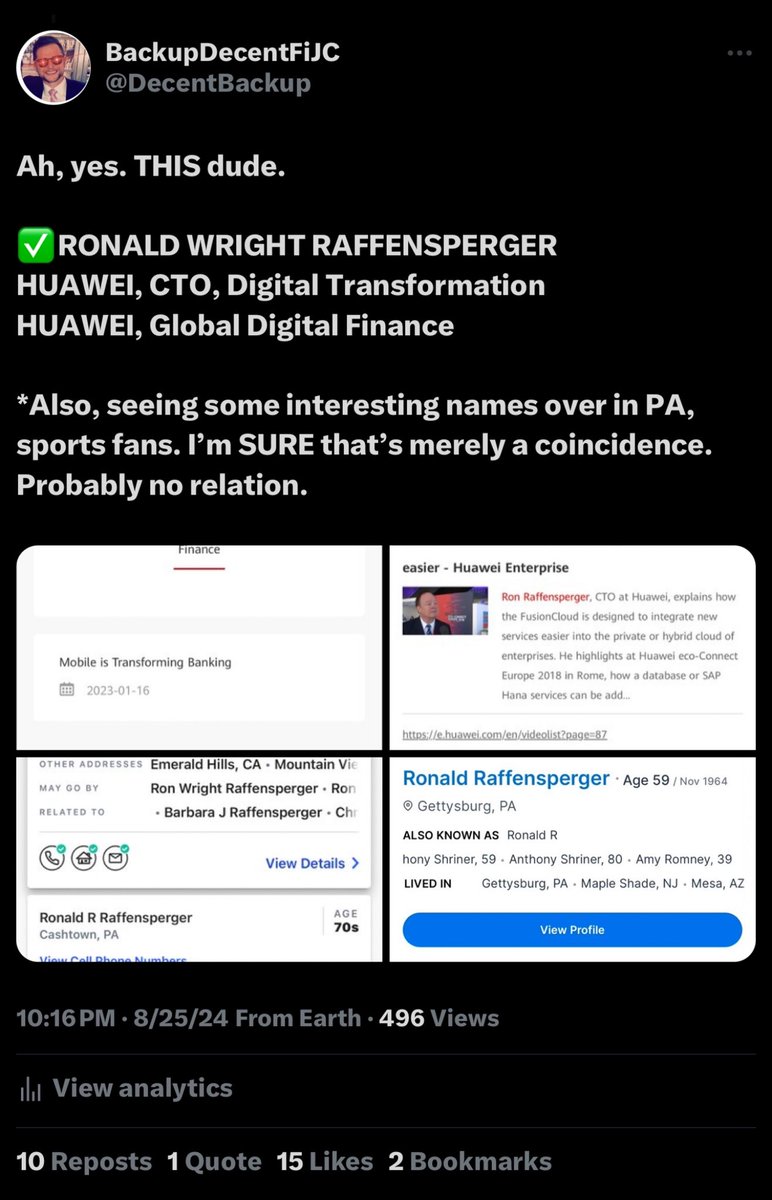 Here’s the Huawei and UNESCO “2030 Agenda” partnership, and several states’ key elections networks that we now know were compromised via “Huawei Remote Command Execution” hacks of Dominion Voting Systems, Knowink Poll Pads, polling places and the elections networks themselves. And there’s Ron Raffensperger, CTO of Digital Transformation at Huawei (China), who may (quite literally) be related to both Brad Raffensperger and… Mitt Romney.🤣