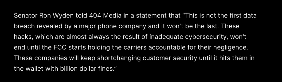 5/ In a statement, Senator @RonWyden brings the fire. Big breaches must come with big dollar consequences.👇 Sad truth, but I doubt many members of Congress will raise their voices to call for change... even though all their constituents are impacted.