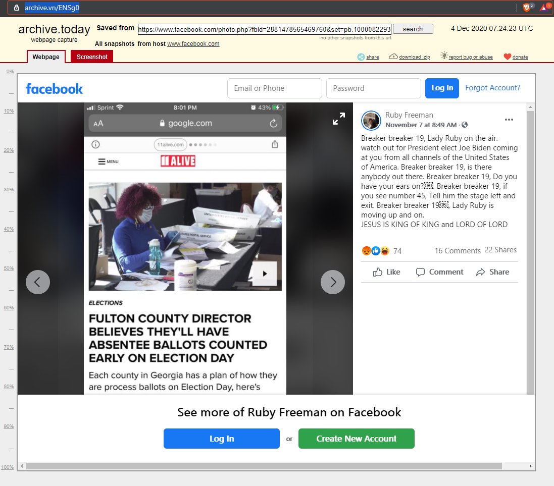 Ruby Freeman Boasted About Her Involvement In Voter Fraud Then Later Deleted It Archive Links: http://archive.vn/ENSg0 Voting Bus Link : http://archive.vn/kRRTL Supervisor Link : http://archive.vn/89LVE Cubical Link : http://archive.vn/lmYZC FB: http://facebook.com/LadyRuby.Freeman/videos…