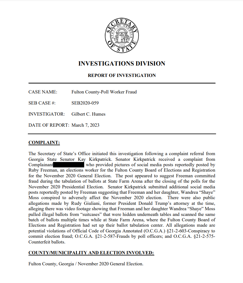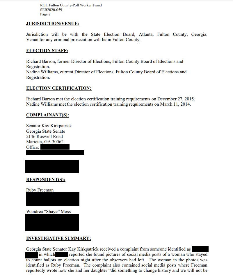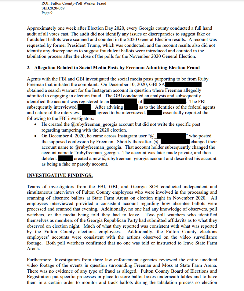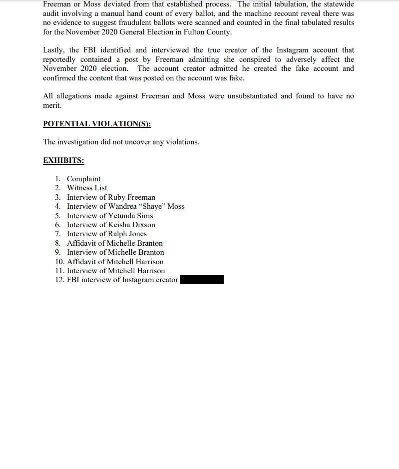 Fulton County Investigation Report Which Includes The Same Ruby Freeman, Wandrea “Shaye” Moss Her Daughter And A Instagram Creator That The FBI Interviewed.. 🔗https://t.me/thehallsofjusticewatchtower/25053