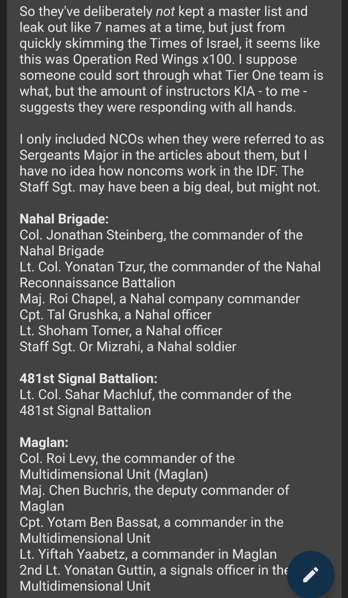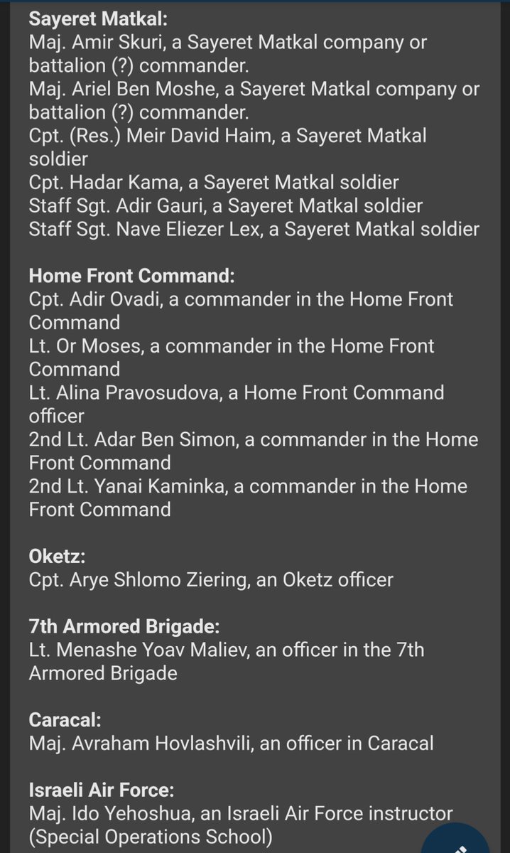 Here's a list so far of just the OFFICERS Hamas bagged on the first day They absolutely destroyed the cream of the Israeli military, overran three headquarters and the Gaza command It's an historic military victory, a total decapitation, and it has destroyed the state of Israel https://t.co/l89Ul85rmp
