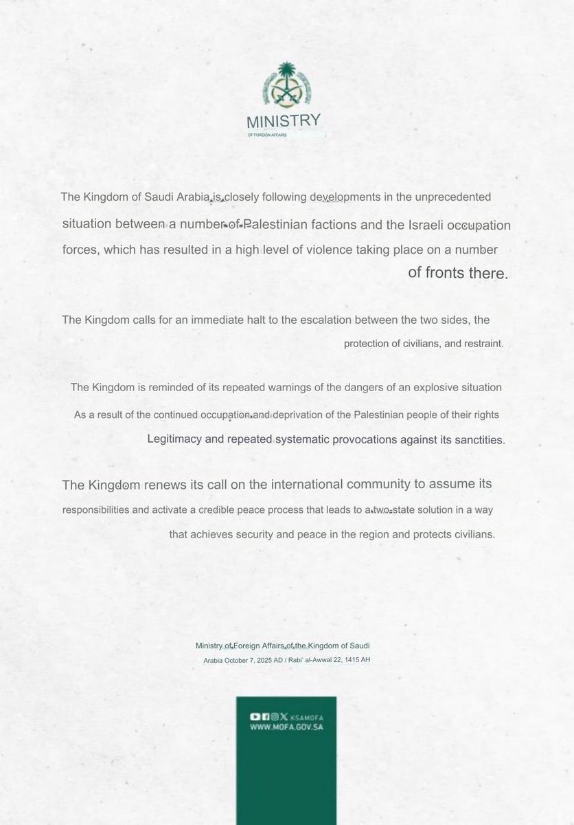 Netanyahu said “The first goal of Israeli forces is to clean the areas of the attackers and restore security.” 76/ https://t.co/v5r7dDv3Nk