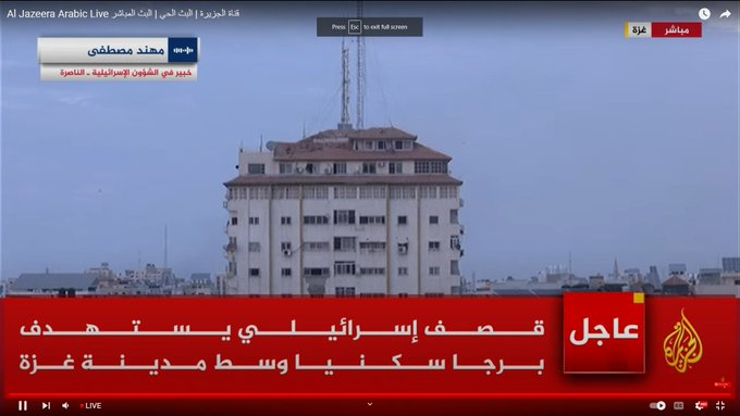 This tower in Gaza received its roof knock it will be gone in few minutes #Isarel #Palestine #Gaza #طوفان_الاقصى https://t.co/kAhCwiHv35