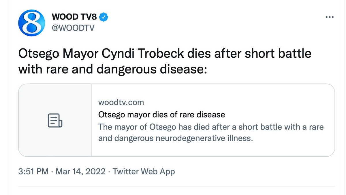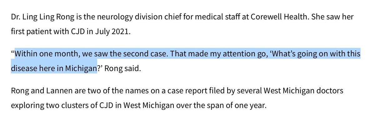 So real Accelerated CJD clusters in Michigan. https://www.woodtv.com/news/michigan/deadly-clusters-doctors-urge-closer-look-at-rare-always-fatal-brain-disease/