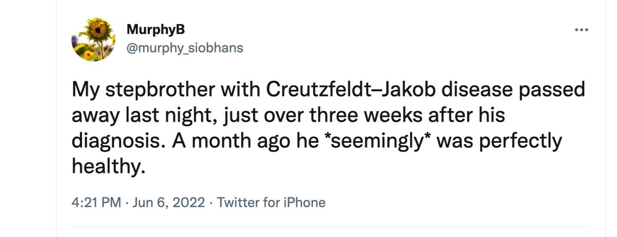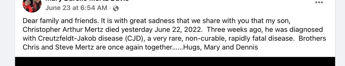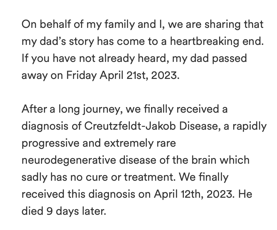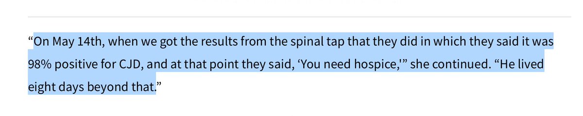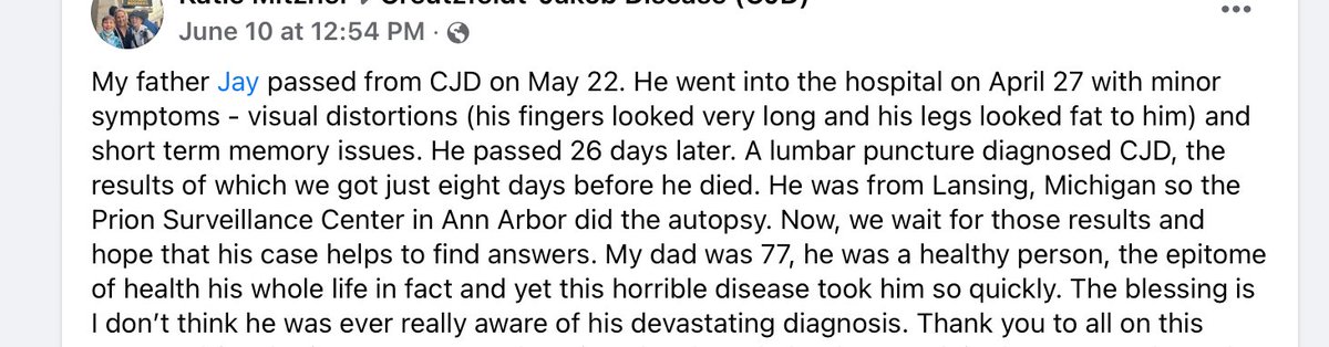 Remember Jay, he was the MI attorney Dx with an aggressive Heidenhain variant of CJD who died very quickly. Then MI Doctors found a cluster of CJD cases. > https://t.co/I9jSou7XcE