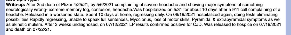 My relative with vaxx-induced CJD, had strikingly similar symptom presentation as this💉case: "Her current condition progressed rapidly with onset of confusion, forgetfulness, and hallucinations within the next 5 days. Over the next 2 days, the patient developed difficulty>
