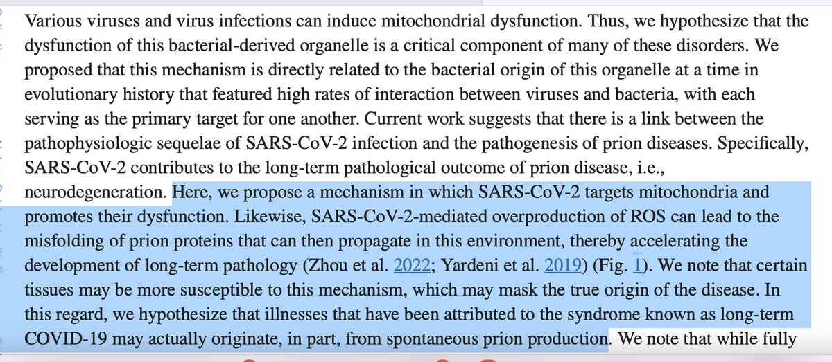 This paper supports @PlanZip's theory that the SARS2 virus is preferentially targeting the mitochondria in host cells. They surmise it's because of the co-evolution of the two, which predates eukaryotes. #AllRoadsLeadToMitochondria https://www.ncbi.nlm.nih.gov/pmc/articles/PMC10047479/