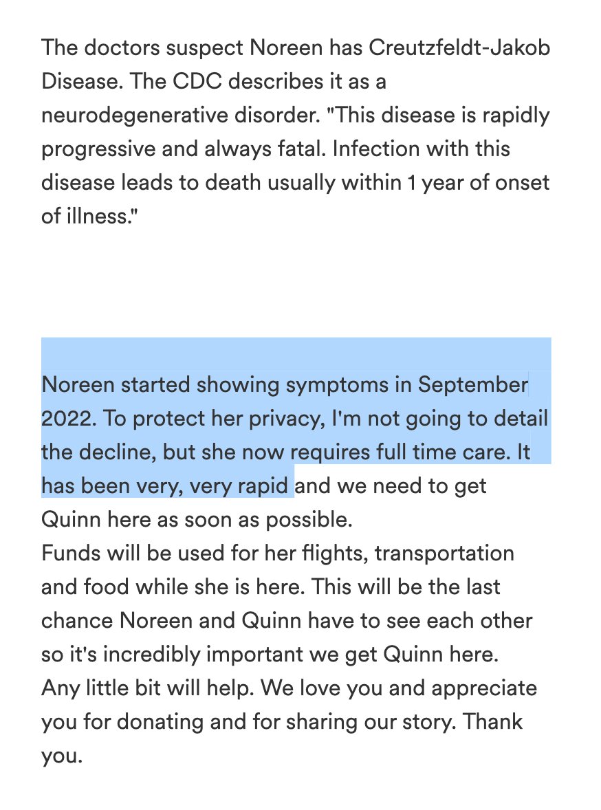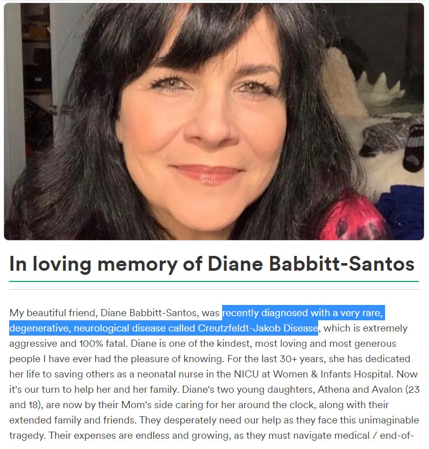 "my sister Casey recently became very ill with an extremely rare brain disease and she has declined at a rapid pace." #CJD https://gofund.me/3c74087a