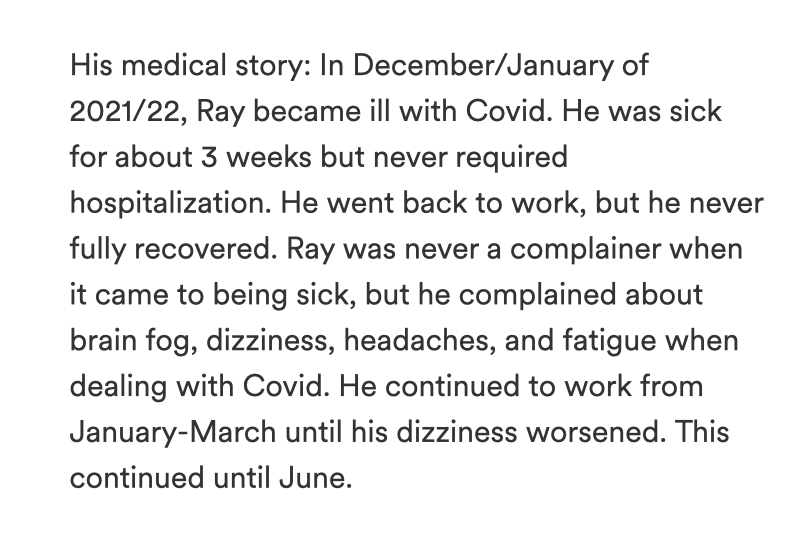 Looking at this case, it might simply be neurodegeneration from untreated Long Covid (see research of dbdugger) because the time fits that Dx better. RIP Ray thank you for your service ❤️.