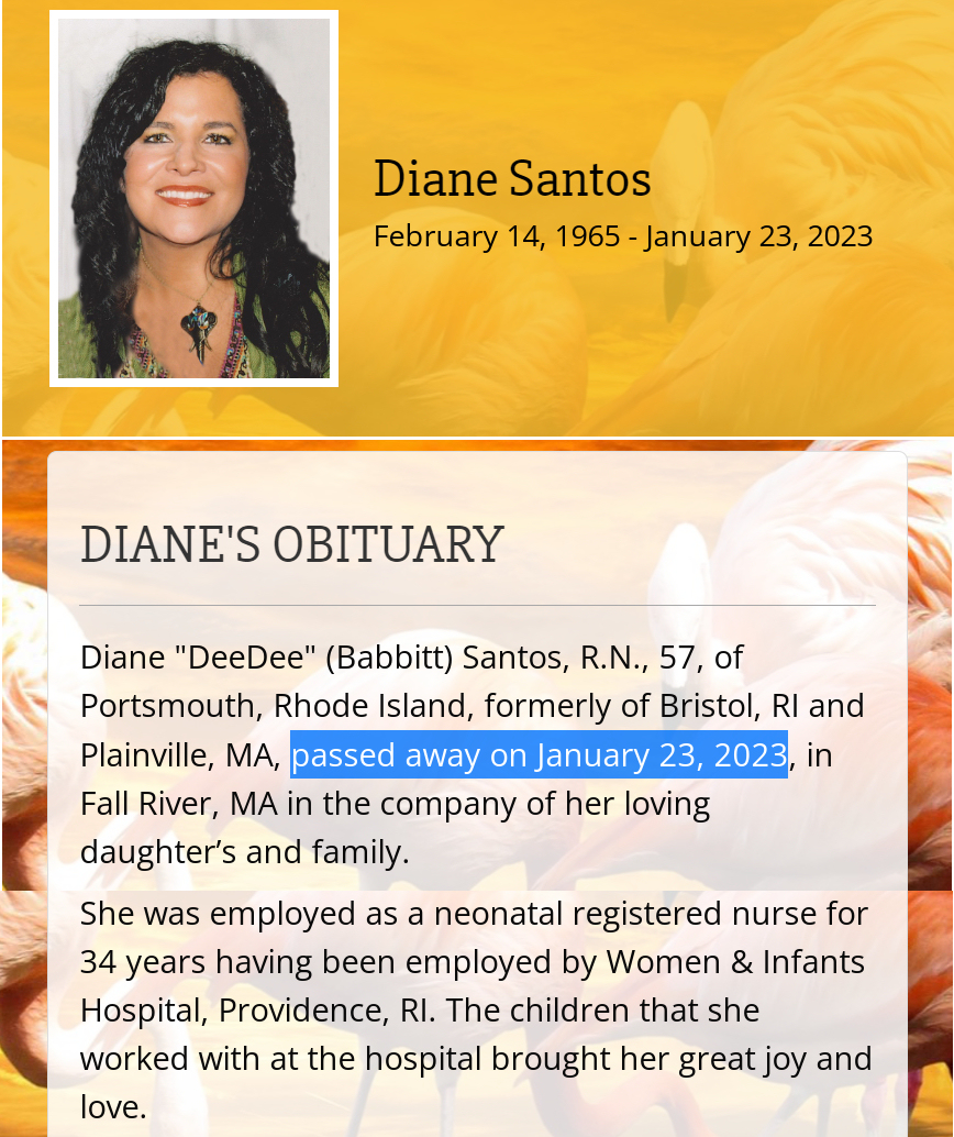 Diane was a nurse, presumably she received all her inoculations. GFM created: 01/14/2023 Death: 01/23/2023 RIP Diane