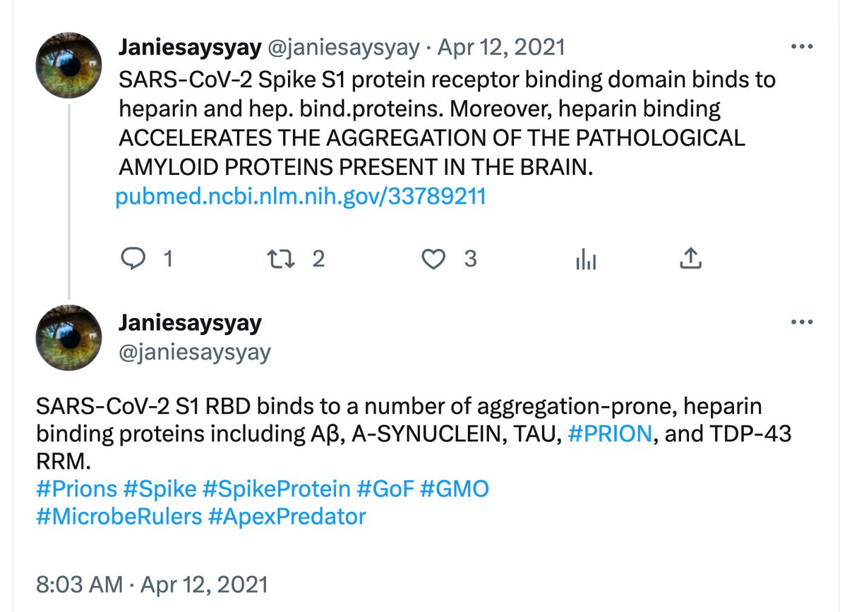 The SARS2 spike protein S1 subunit has a prion-like domain on it, this helps the 🦠 to cause or accelerate neurodegenerative diseases. Montagnier and Perez theorize that the synthetic spike of the 💉 can do the same. https://www.frontiersin.org/articles/10.3389/fnins.2022.1002770/full