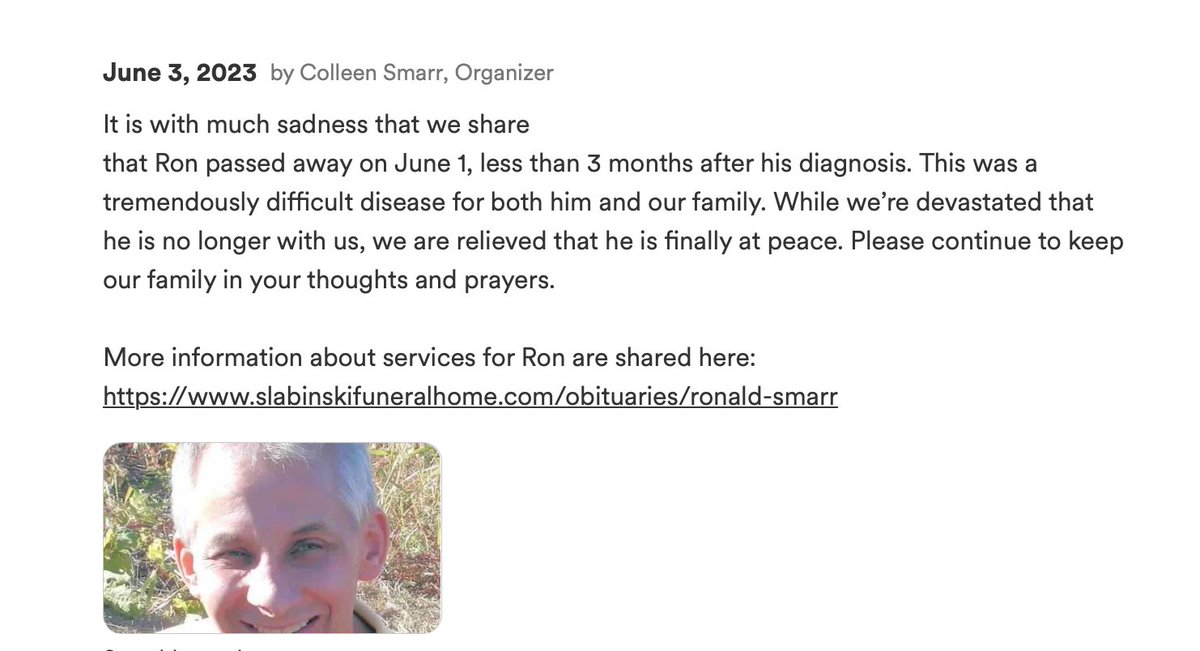https://gofund.me/f284fa4e #RIPRon