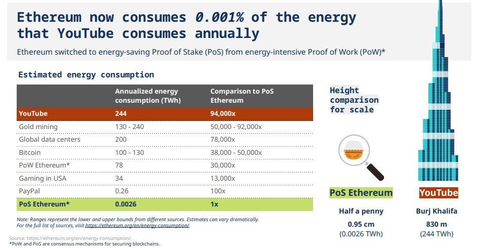 Ethereum The Merge turned $ETH into a eco friendly blockchain. Energy consumption reduced by 99% and ETH Staking transforms collateral into outsized economic security