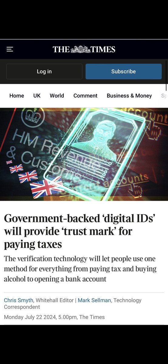 🚨🌎 Digital ID’s are Coming We’ve been warning you all - WEF championed Digital ID’s are on the way ‼️ Sold under the guise of ‘convenience’ & ‘safety’ they will ensure your every online action, social media post & transaction is tracked & recorded by the State. Once embedded they will inevitably evolve into a tool of tyranny - linked into your ‘smart’ everything the Government will control what you can buy, in what quantity, your energy & water usage - even out limit quotas on things like meat purchases. The ultimate goal is personal Co2 trackers tied into a Chinese social credit like score all underpinned by a Central Bank Digital Currency - Technocratic Communism. This should be the last bastion of our inalienable human freedoms & we must all resist this tool for absolute tyranny.