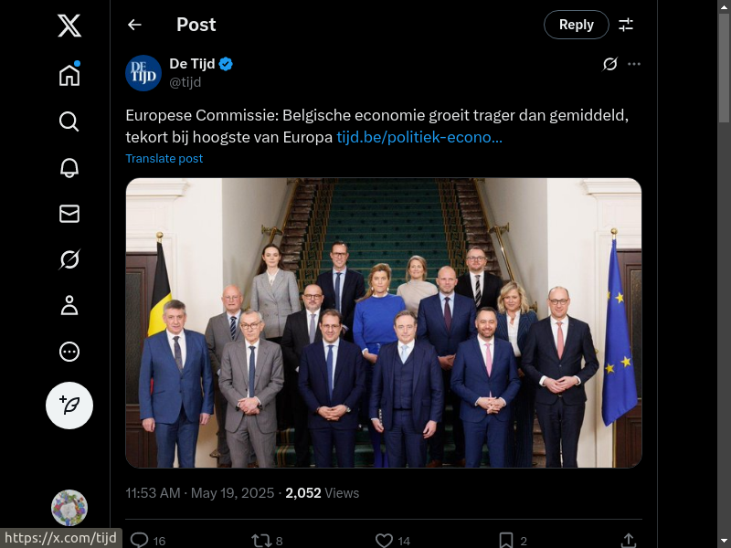 Europese Commissie: Belgische economie groeit trager dan gemiddeld, tekort bij hoogste van Europa. Zie nu als je een parasitair systeem vertrouwt+onderschrijft ipv vrije waarheid. Het systeem zal je geleidelijk op brood+water zetten+zelfs ... . Zie oudertweet en zijn reacties.