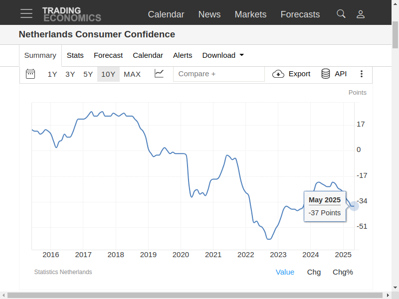 https://tradingeconomics.com/netherlands/consumer-confidence Nederland, zie nu als je een parasitair systeem vertrouwt+onderschrijft ipv vrije waarheid. Het systeem zal je geleidelijk op brood+water zetten+zelfs achter je laatste bezittingen komen. Je krijgt wat je verdient voor .. . Zie oudertweet en zijn reacties.