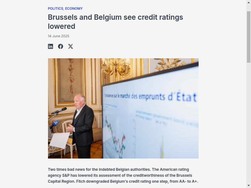 Belga news agency: Two times bad news for the indebted Belgian authorities. ... Fitch downgraded Belgium's credit rating one step, from AA- to A+. Zie nu als je een parasitair systeem vertrouwt+onderschrijft ipv vrije waarheid. Het systeem ... . Zie oudertweet en zijn reacties.