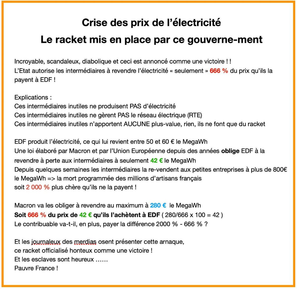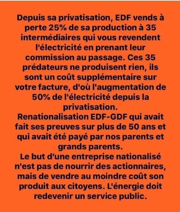 7/X) Rappel du l'absurdité, tout ça à cause d'une loi stupide qui plombe EDF, la solution est simple, il suffit juste de renationalisé EDF, ils auraient du anticiper ça, mais ce sont des incompétents qui font n'importe quoi, on marche sur la tête