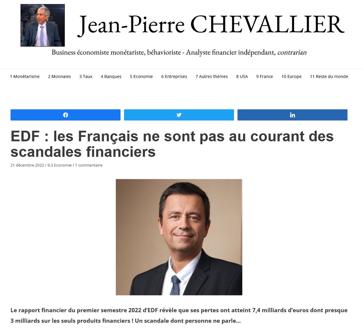 35/X) Thread EDF↕️ 21/12/22 "EDF : les Français ne sont pas au courant des scandales financiers" Jean-Pierre CHEVALLIER Business économiste monétariste, béhavioriste - Analyste financier indépendant, contrarian https://chevallier.biz/edf-les-francais-ne-sont-pas-au-courant-des-scandales-financiers/