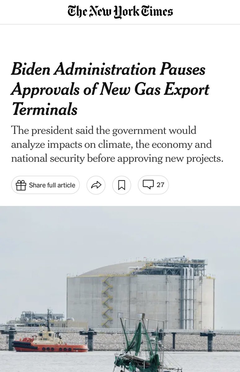Biden gave Gov. Abbott a 1 PM EST deadline to remove his National Guard troops Abbott refused So Biden issued punitive sanctions against Texas by pausing liquid natural gas development opportunities, which will directly hurt the Texas economy That’s not a coincidence This is how evil Biden is He is suffocating Texas jobs b/c Gov. Abbott is protecting our border