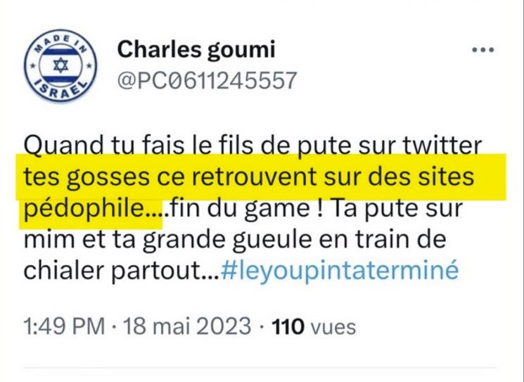 9️⃣ Il existe encore énormément d'extraits de spaces bien plus longs, tous partagés grâce au travail minutieux de @wesh_bik_, mais un thread ne sera jamais suffisant pour tous les dénoncer. Notre question est simple : que fait la justice ? La haine en ligne est en augmentation fulgurante depuis quelques années, et ce type de personnage émerge en se pensant intouchable. La justice doit se saisir de ces cas avec la plus grande fermeté et au plus vite. De votre côté, n'hésitez pas à porter plainte et à signaler tout racisme sur la plateforme #Pharos. La lutte contre la haine en ligne est l'affaire de tous. FIN DU THREAD
