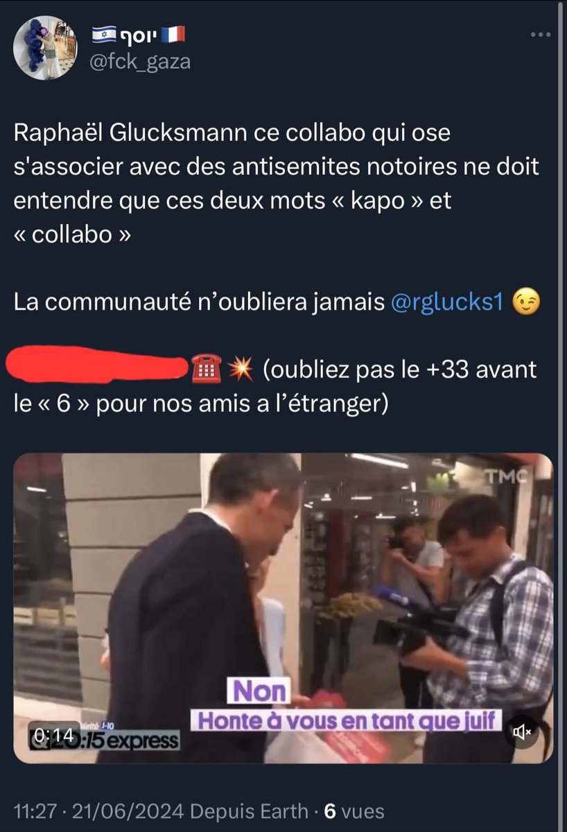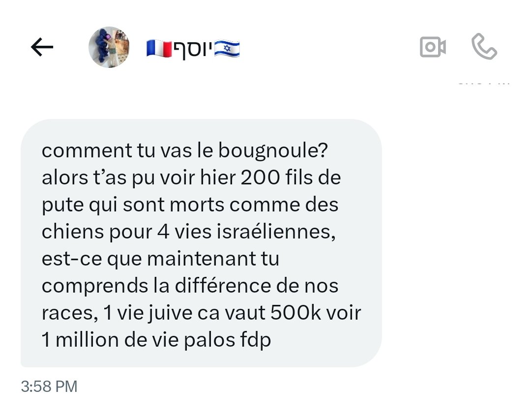 @ZohraBitan @Fckgazadoxx 5️⃣ Il a également partagé les numéros de @sebastiendelogu et @rglucks1, violant leur vie privée. Il se réjouit de la mort de milliers de personnes qu'il considère comme inférieures, ce qui montre l'étendue de sa haine. https://t.co/jnTzcbNhB3