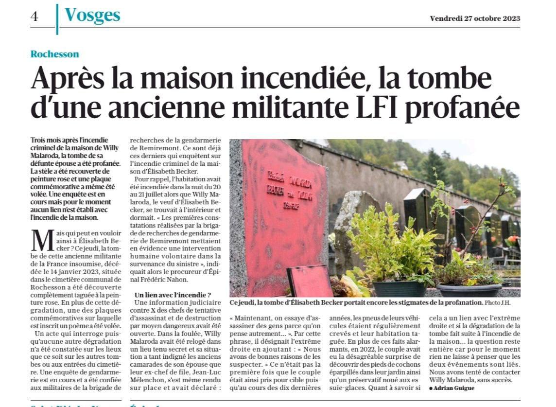 @Arcom_fr @GDarmanin @GMeurice Au passage, même si je m'éloigne un peu, ils n'ont pas non plus eu de mot suite à la profanation de la tombe d'une militante insoumise. https://x.com/ALeaument/status/1717846892833304920?s=20