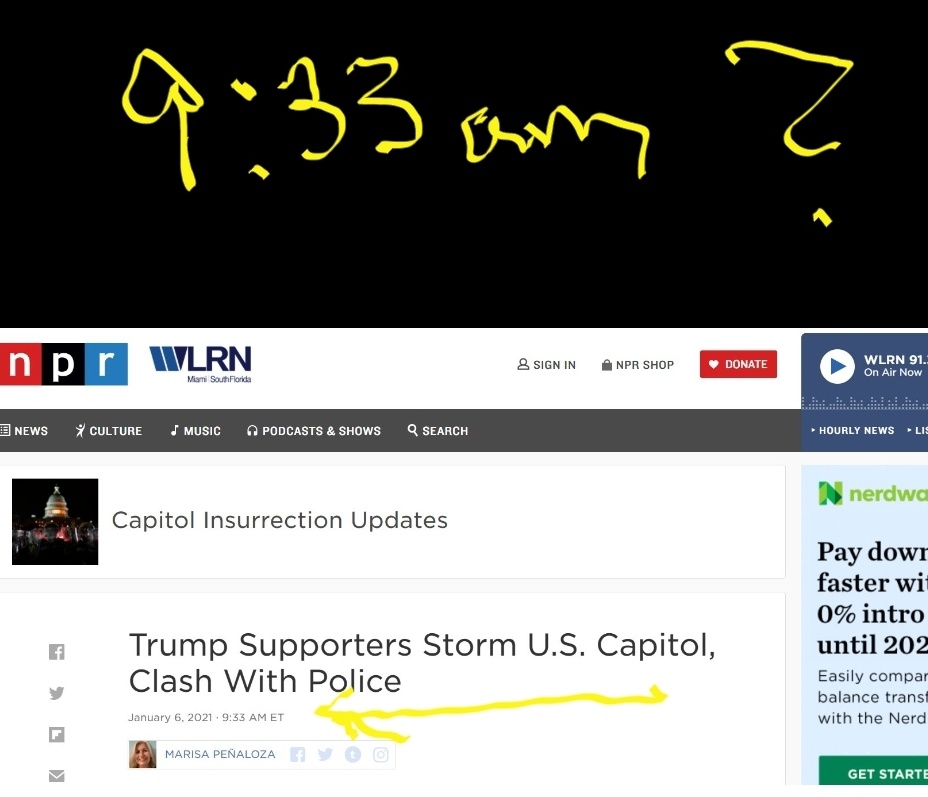 🎯PART 🎯 62 9:33am @NPR reports #TrumpSupporters STORM US #CAPITOL clash w/ #CapitolPolice On #Jan6th How did they know it's #Trump Supporters? Since, Trump started speaking at Noon Concluded at 1:11pm