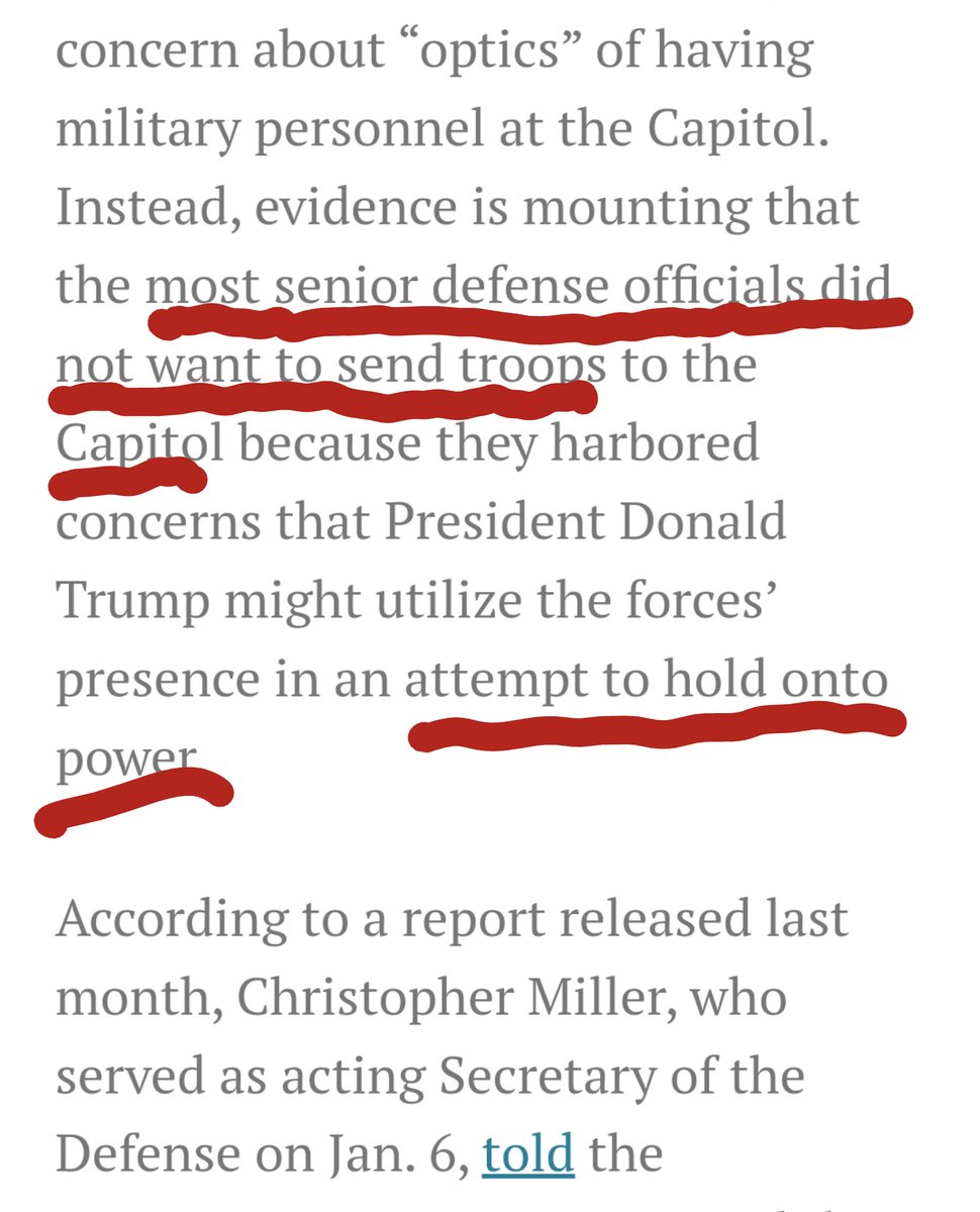 🎯PART 🎯 64 w/respect to #TRUMP'S request for #NationalGuard SENIOR DEFENSE OFFICIALS 🚩Broke #ChainOfCommand due to concerns which led them to impose UNPRECEDENTED CONSTRAINTS on authorizations for use of #NationalGuard–#SecDef Miller admitted https://www.justsecurity.org/79623/crisis-of-command-the-pentagon-the-president-and-january-6/