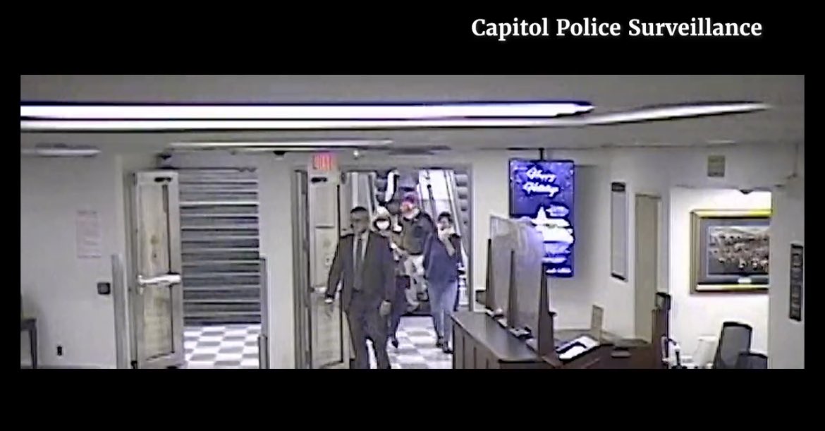 Ashli Babbitt and I were the first to arrive at the Speakers Doors where I offered water and we even joked with Sgt. Timothy Lively, Officer Kyle Yetter (Now an FBI Special Agent), and Officer Christopher Lanciano. At this point she had not vandalized anything (she never did) nor committed any act of violence. As we entered the lobby you can hear me tell Mr. Gandolph to “Stay Safe, all right?” Mr. Gandolph would later give false testimony saying he observed Ashli “participate in breaking the glass to the doors” when witness testimony AND video evidence proves such a thing never occurred.