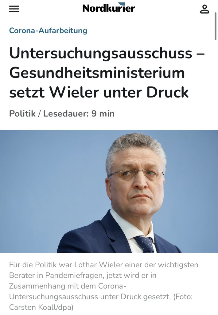 โRecherchen dieser Zeitung zeigen jetzt, wie massiv das Bundesgesundheitsministerium Lothar Wieler unter Druck setzt und die Arbeit des Ausschusses behindert. Konkret geht es um eine sogenannte "Aussagegenehmigung", die geheim gehalten werden sollte und einen ominรถsen Aufpasser an der Seite des frรผheren RKI-Chefs Wieler. Es kam zum Eklat.โ https://nordkurier.de/politik/corona-untersuchungsausschuss-gesundheitsministerium-setzt-lothar-wieler-unter-druck-afd-cdu-heiko-rottmann-grossner-1918272 http://t.me/Rosenbusch