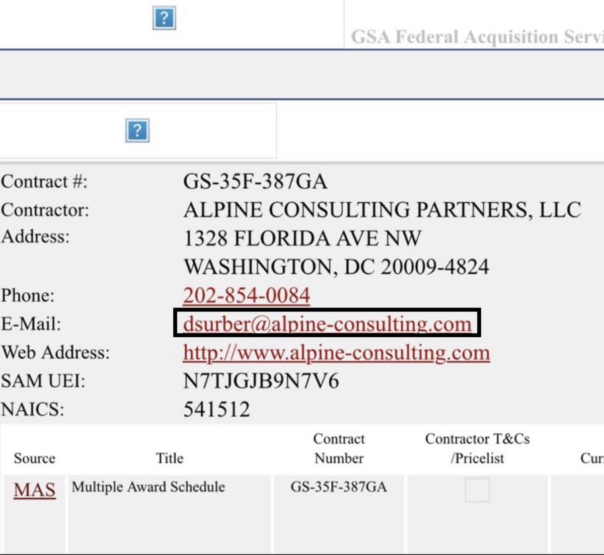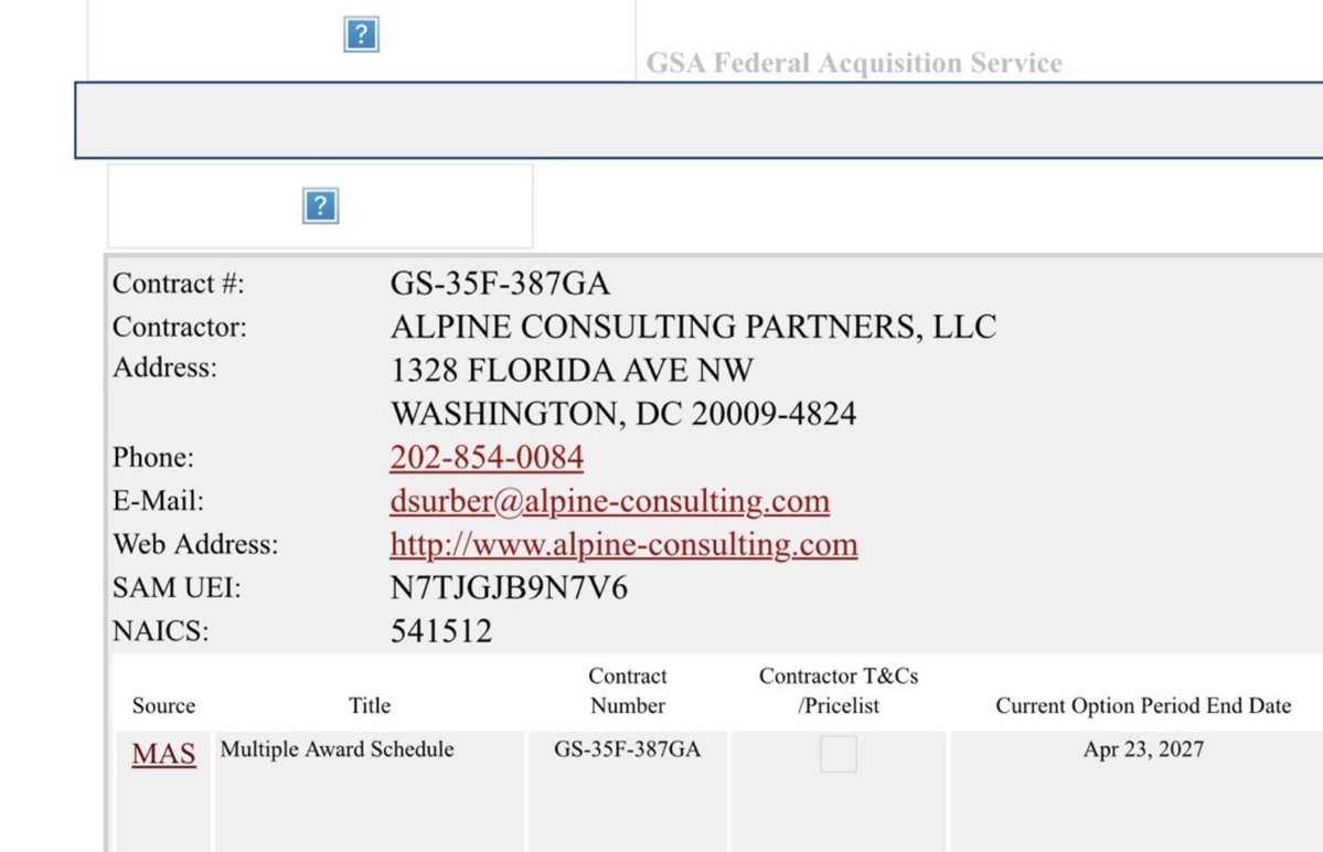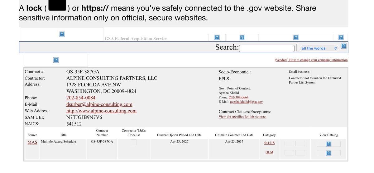 Her profile at Queen’s University Belfast: https://pure.qub.ac.uk/en/persons/ayesha-khalid Links to the Awarded Contracts (incl. CODE360): https://www.highergov.com/idv/47QTCA19D00LF/ GSA Library for Alpine Consulting Contract: https://www.gsaelibrary.gsa.gov/ElibMain/home.dohttp:/www.gsaelibrary.%20gsa.gov/ElibMain/pdf/pdf/contractorInfo.do?contractNumber=GS-35F-387GA&contractorName=ALPINE+CONSULTING+PARTNERS%2C+LLC&executeQuery=YES