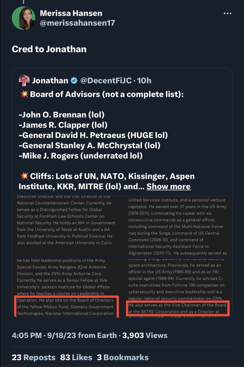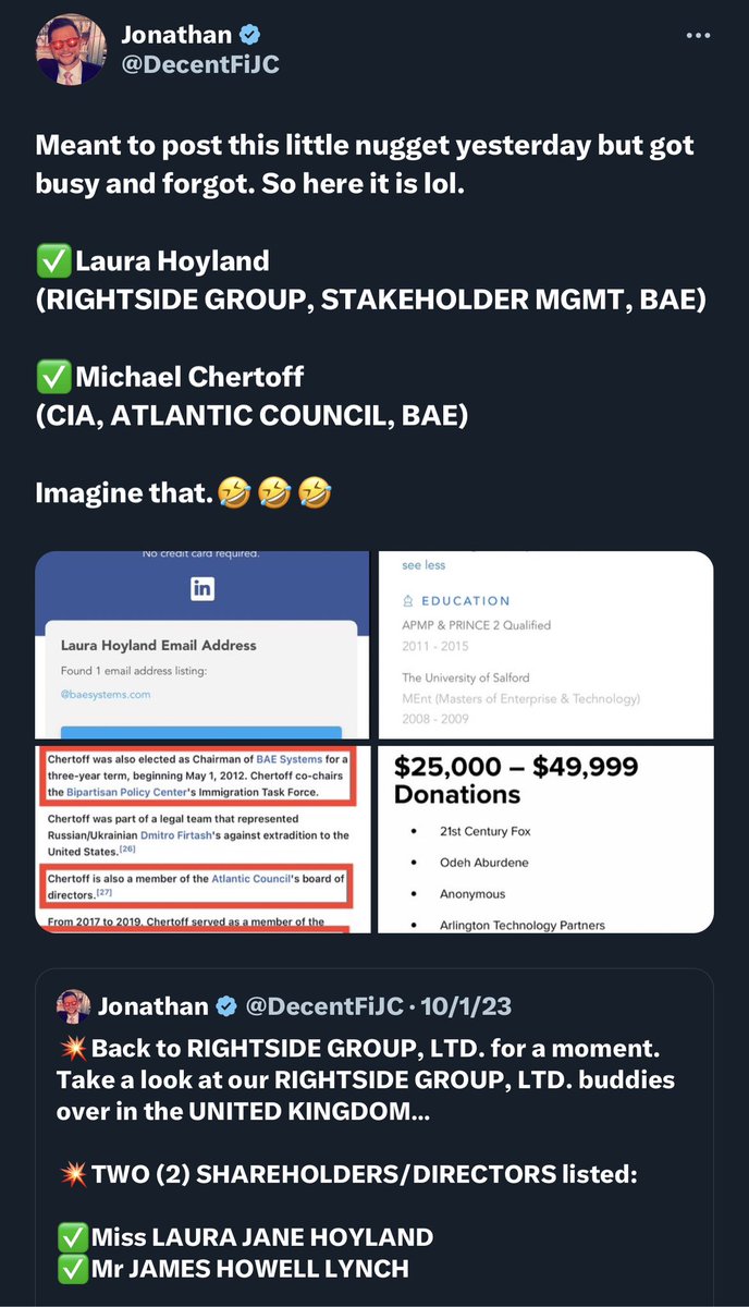 Remember BAE SYSTEMS’ ties to RIGHTSIDE GROUP and the UK? (Laura Hoyland works for both. In the UK lol.) Remember how MICHAEL CHERTOFF is tied to both BAE SYSTEMS (former CHAIRMAN) and the 65 PROJECT ADVISORY COMMITTEE? (Paul Rosenzweig, 65 Project Adv. Cmte) 💥REMINDER: The 65 Project seeks to get conservatives sued and their attorneys disbarred for even challenging elections outcomes, which is a violation of Constitutionally-protected rights. By their own stated purpose, their very existence is illegal and unconstitutional lol. There’s MIKE ROGERS too! From known-CIA nonprofit, THIRD OPTION. And MITRE. Seems he’s a big a fan of Paul’s work too! Super duper.