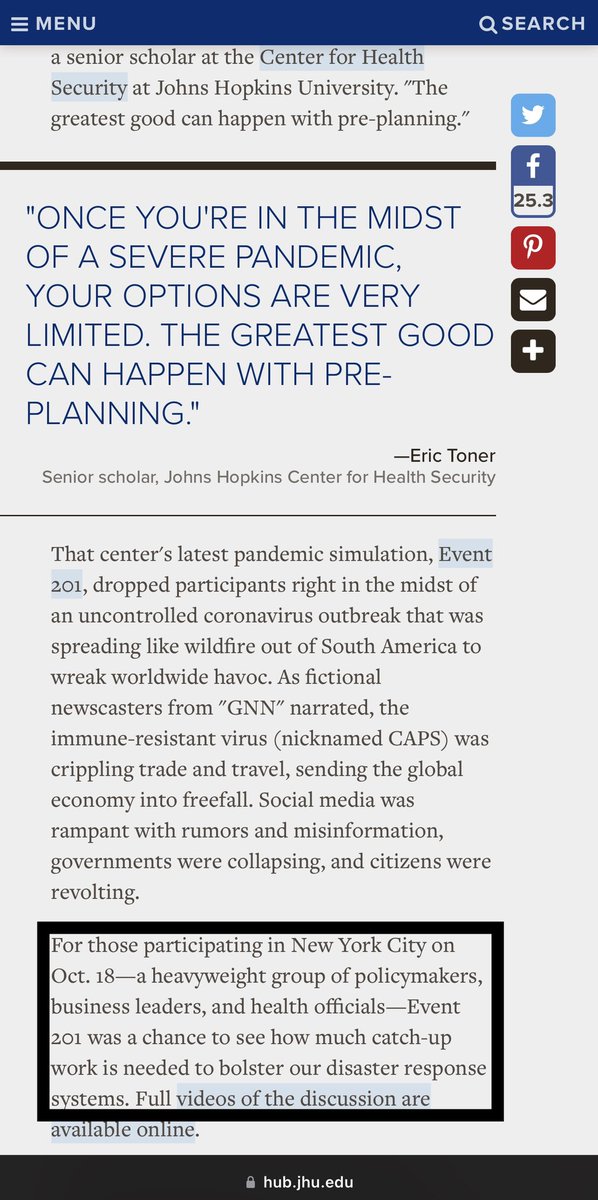 That’s a very interesting START DATE to the contract, I must say. 29 DAYS before EVENT 201. Chilling AF.😨 https://hub.jhu.edu/2019/11/06/event-201-health-security/