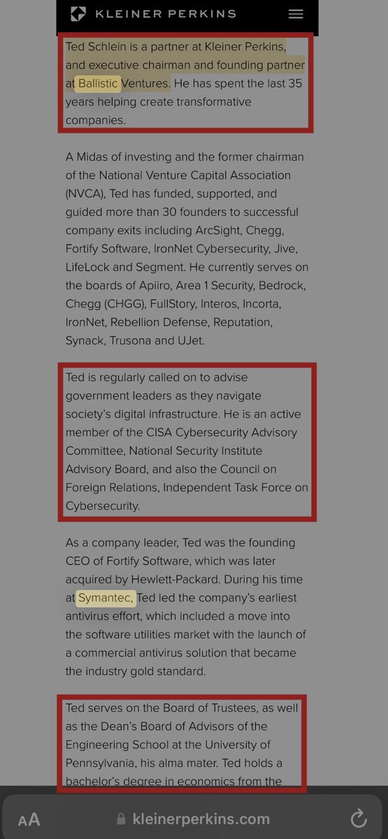 💥KLEINER PERKINS: CIA/NSA/GCHQ/IDF-front that has absolutely NO BUSINESS anywhere NEAR our ELECTIONS ADMINISTRATION or OVERSIGHT processes… OR our ERIC VOTER DATA, ffs. *Stares at CISA/DHS/IN-Q-TEL/UPENN/Mossad/IDF/GCHQ/etc.* Srsly… ZUCKERBERG? GENENTECH? GOOGLE? BAIN & CO.?