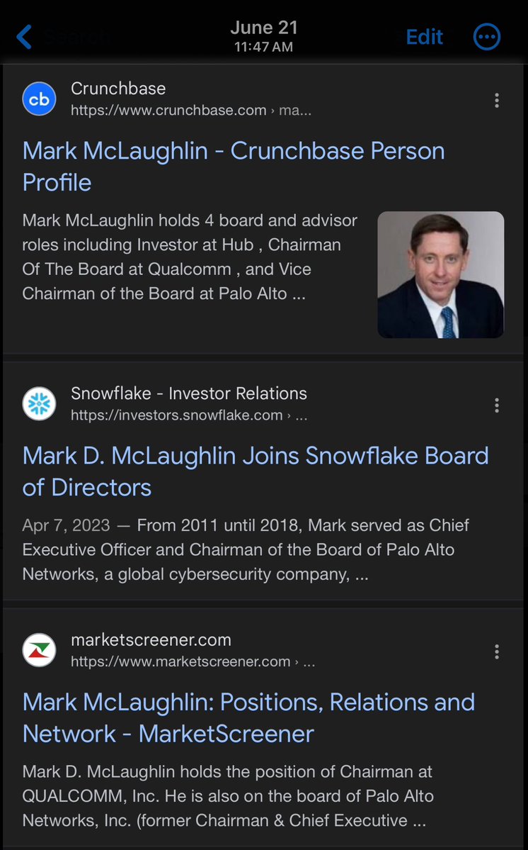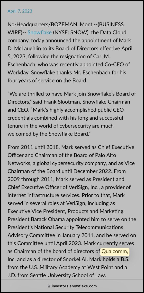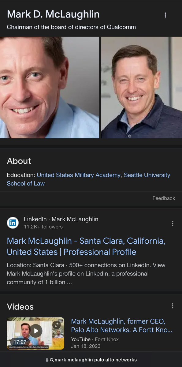 Btw, did I mention the CHAIRMAN of QUALCOMM happens to be VICE CHAIRMAN of PALO ALTO NETWORKS too? Because that’s also real life, sports fans. 💥💥💥💥💥💥💥 MARK MCLAUGHLIN 💥💥💥💥💥💥💥 In fact, he’s an OG PALO ALTO NETWORKS EXECUTIVE. https://t.co/C4Fi9o7DSH