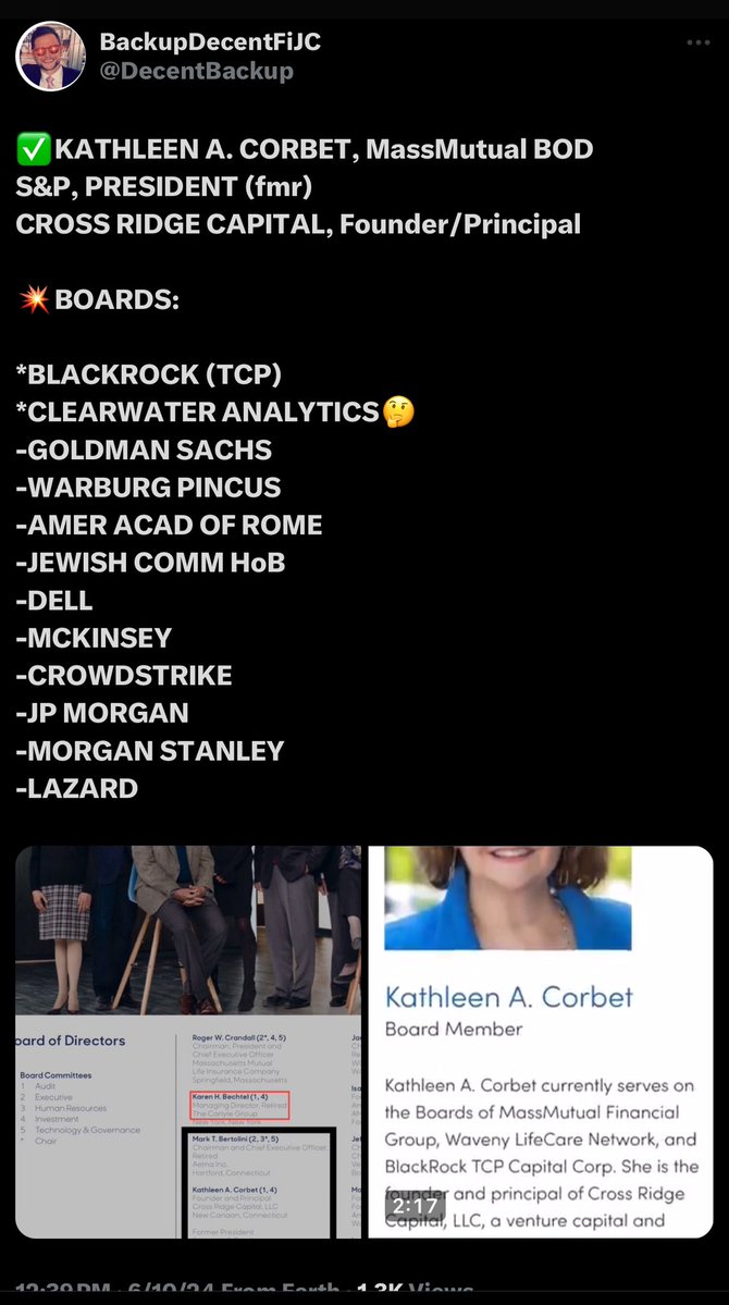 And speaking of GARTNER, KATHLEEN CORBET, from MASSMUTUAL’S BOARD OF DIRECTORS, was an INDEPENDENT BOARD MEMBER for GARTNER! What a HUGE Cohencidence THAT is! Definitely don’t read THIS thread about CORBET, BERTOLINI and SEVERAL OTHER ACCOMPLICES. Like AUSTIN from CrowdStrike! https://t.co/geHyYiqfZq