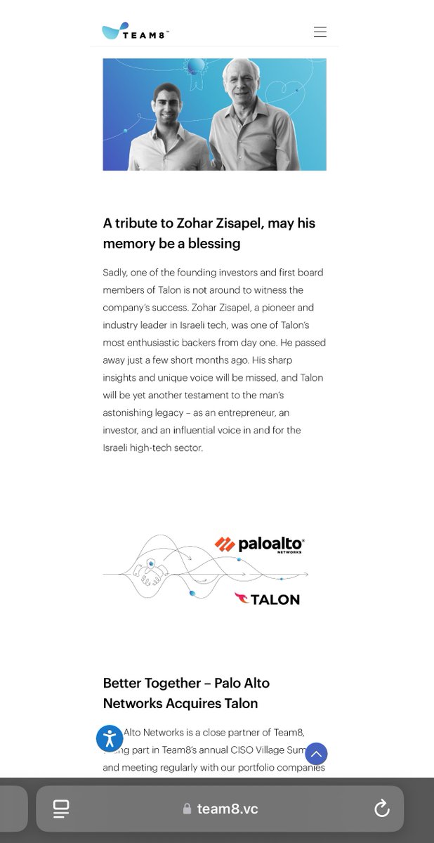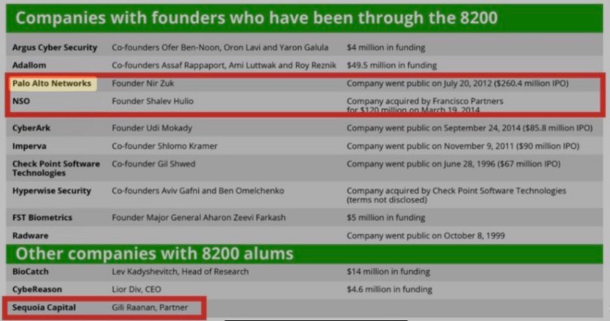 4. PALO ALTO NETWORKS is also FOUNDED by IDF UNIT 8200 OFFICER, NIR ZUK. 5. NIR ZUK and PALO ALTO NETWORKS have been PARTNERED WITH and SPONSORED by SEQUOIA CAPITAL since (at least) 2005. 6. SEQUOIA itself is CO-FOUNDED by GIL RAANAN of IDF UNIT 8200. https://www.paloaltonetworks.com/company/press/2023/palo-alto-networks--announces-intent-to-acquire-enterprise-browser-start-up-talon-cyber-security