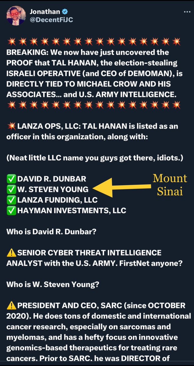 Good question. 1. I’d identified TAL HANAN being “the guy” who colluded with CIA and Maricopa County elections officials months ago, long BEFORE I even knew who Scott Presler’s DAD was. 2. Considering what I knew about how Digital voter registration systems (like ERIC) are primary tools for stealing elections, combined with SP’s seemingly STRANGE aversion to ever even DISCUSSING the digital side of election fraud, I began suspecting SOMETHING was amiss. 3. Scott would become SNARKY, COMBATIVE, AGITATED and TOTALLY DISMISSIVE whenever HIGHLY CREDIBLE INDIVIDUALS informed him (on several occasions) those tools can (and WILL) erase all your “weeks/months/years of registering voters via a grassroots approach” in seconds. 4. Then I learned who his dad was — TOP INFO OPS GUY in our FEDERAL GOVERNMENT and a RETIRED NAVY CAPTAIN — and it became IMPOSSIBLE for Scott to simply “not know what was REALLY going on”. 5. THEN I learned HANAN is IDF’S LIASON to the NAVY. https://truthsocial.com/@RINOhunter/112196850063716759